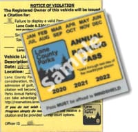 Annual Pass good for valid parking at all Lane County Parks facilities. Mailed within 5-7 days of purchase.